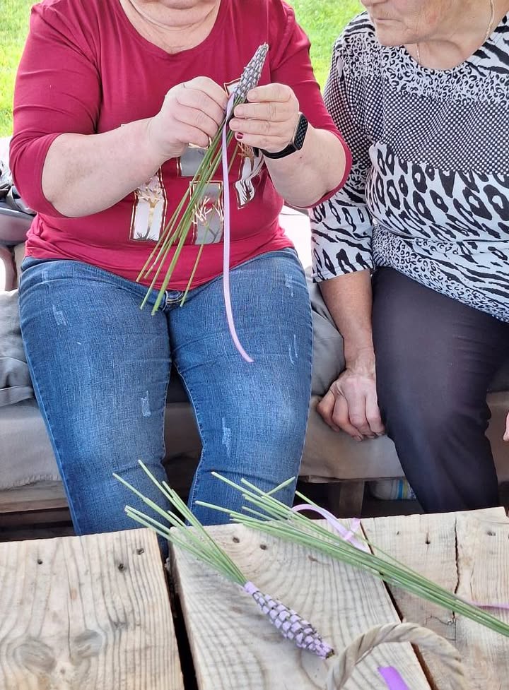 Dziś pogoda dopisała, nie za ciepło nie za zimno tak w sam raz. Odwiedzili nas seniorzy z Klubu Seniora ☺️ i wspólnie wykonaliśmy lawendowe fusetki i koszyczki. Początkowo było ciut pod górkę ale później już poszło szybciutko 😊
